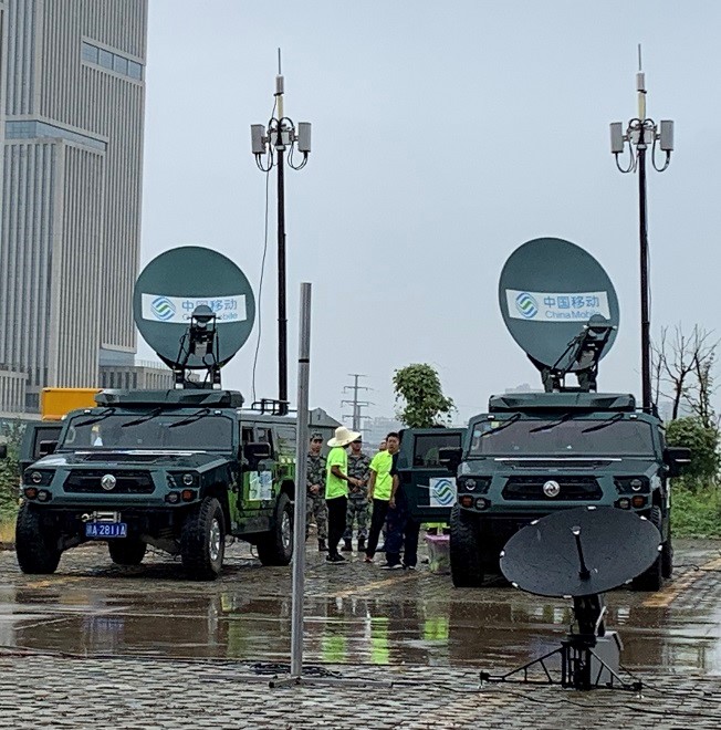 演練期間,現場模擬了災區地面網絡設備大面積損毀,通信嚴重受阻的場景,各省應急通信隊伍共同保障,開展了包括衛星應急車、便攜站、微波、無人機等的多項科目演練。其中重點演練了5G基站應急服務及中國衛通Ka寬帶衛星通信服務在應急場景下的應用。